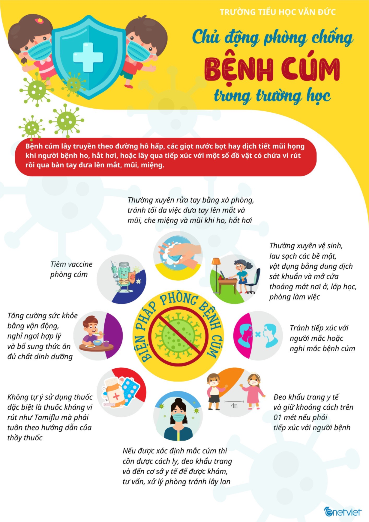 Cho trẻ nghỉ học, đưa trẻ đến cơ sở y tế và thông báo cho nhà trường khi trẻ có các dấu hiệu sốt trên 38 độ C, ho, đau họng, đau đầu, đau cơ, mệt mỏi…. Không tự ý sử dụng thuốc hoặc điều trị bệnh tại nhà.